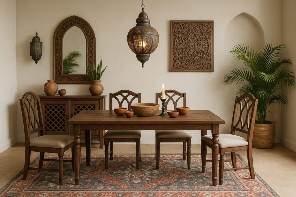 モロッコの伝統工芸を感じさせる繊細な装飾と、異国のリズムを感じる曲線が空間を華やかに彩ります。